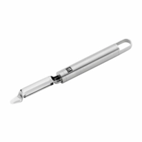 Erleben Sie höchste Präzision und Komfort beim Schälen von Obst und Gemüse mit diesem hochwertigen Sparschäler der renommierten Marke Zwilling. Seit fast 300 Jahren steht Zwilling für exzellente Qualität und innovative Küchengeräte, die den Alltag in der Küche bereichern. Das doppelt scharfe, geriffelte Klingenblatt aus rostfreiem Edelstahl sorgt für hauchdünne Schälergebnisse mit minimalem Abfall – ideal für alle, die Wert auf Effizienz und Nachhaltigkeit legen. Der ergonomisch geformte Griff liegt angenehm und sicher in der Hand, sodass auch längere Schälvorgänge mühelos gelingen. Dank des nahtlosen Designs erfüllt dieses Küchenwerkzeug höchste Hygienestandards und lässt sich zudem problemlos in der Spülmaschine reinigen. Die elegante Kombination aus mattem und poliertem Finish verleiht jeder Küche einen Hauch von Luxus. Ein spitz zulaufendes Ende ermöglicht das präzise Entfernen von kleinen Makeln an Obst und Gemüse. Sowohl für Links- als auch für Rechtshänder geeignet, überzeugt dieses Modell durch sein leichtes Gewicht und seine langlebige Verarbeitung. Wer auf der Suche nach einem modernen, robusten und stilvollen Küchenhelfer ist, trifft mit diesem Produkt die perfekte Wahl.